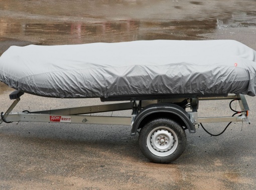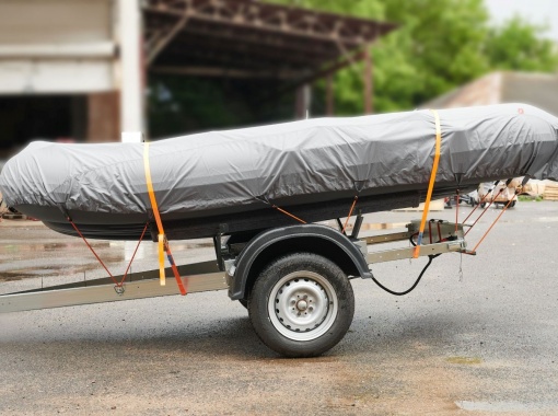Транспортировочный тент на лодку ПВХ из водонепроницаемой армированной ткани Оксфорд Rip-Stop 600D / 1000 PU с полиуретановой пропиткой предназначен для защиты лодки во время транспортировки и стоянки, предохраняет от механических повреждений и других внешних факторов.